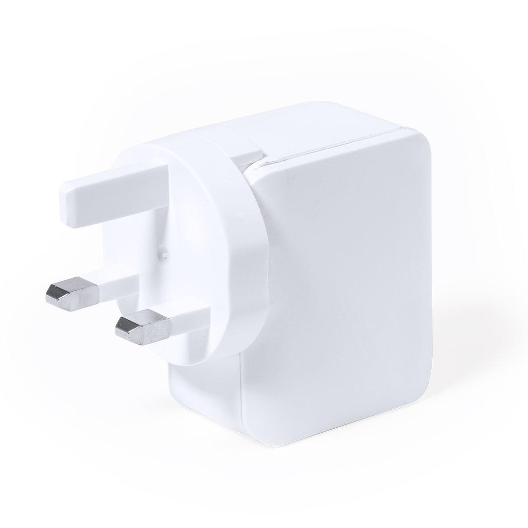 Completo adaptador de enchufes, de diseño compacto y portable. Con salidas USB y Tipo C, especialmente indicado para viajes y con adaptadores multi región para USA, Europa, Asia, Reino Unido y Australia. Indicador LED de encendido y presentado individualmente en caja de diseño kraft.