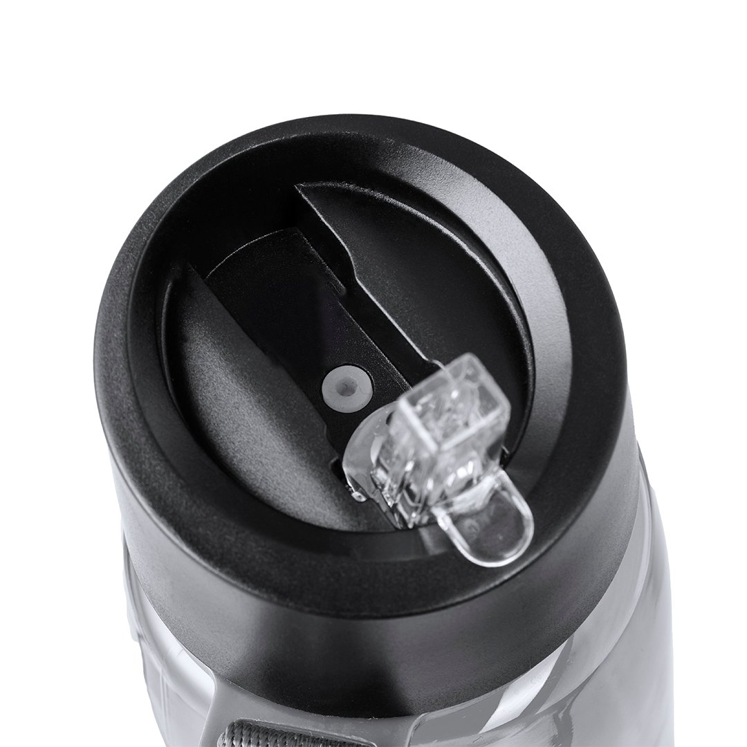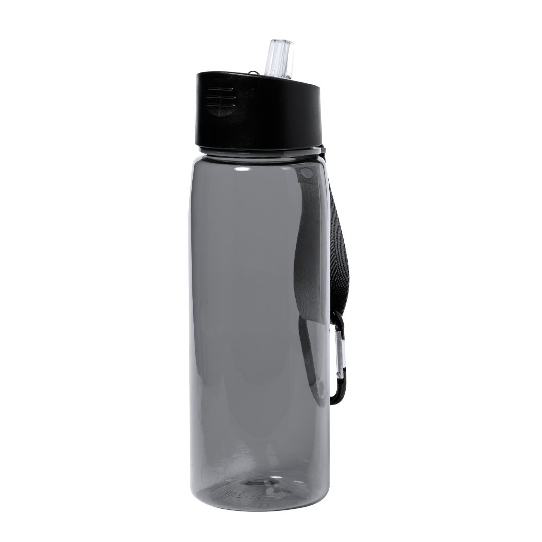 Bidón de 800 ml fabricado en resistente RPET y cuerpo de acabado transparente en variada gama de colores. Tapón negro de rosca, con dosificador y dosificador plegable. Con cinta de transporte a juego y mosquetón metálico para un cómodo transporte. Disponible en variada gama de colores.El material RPET se elabora a partir de plástico reciclado, para así fomentar la reutilización de residuos plásticos y ayudar a la sostenibilidad del planeta.