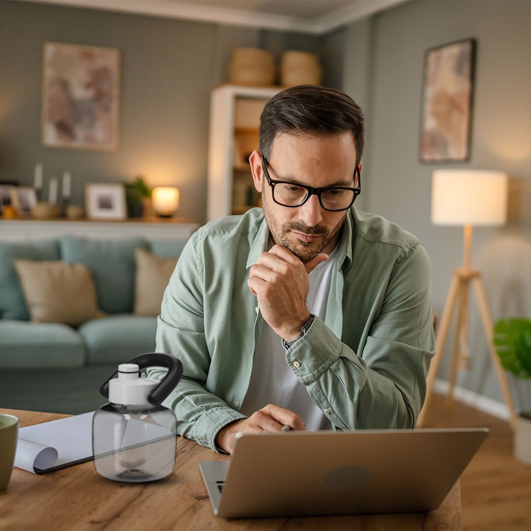 Bidón en resistente RPET con 1,8 L de capacidad. Con original forma de kettlebell en color translúcido brillo. Incluye de cierre a rosca para un óptimo sellado, pajita y firme asa de transporte. Libre de BPA.El material RPET se elabora a partir de plástico reciclado, para así fomentar la reutilización de residuos plásticos y ayudar a la sostenibilidad del planeta.