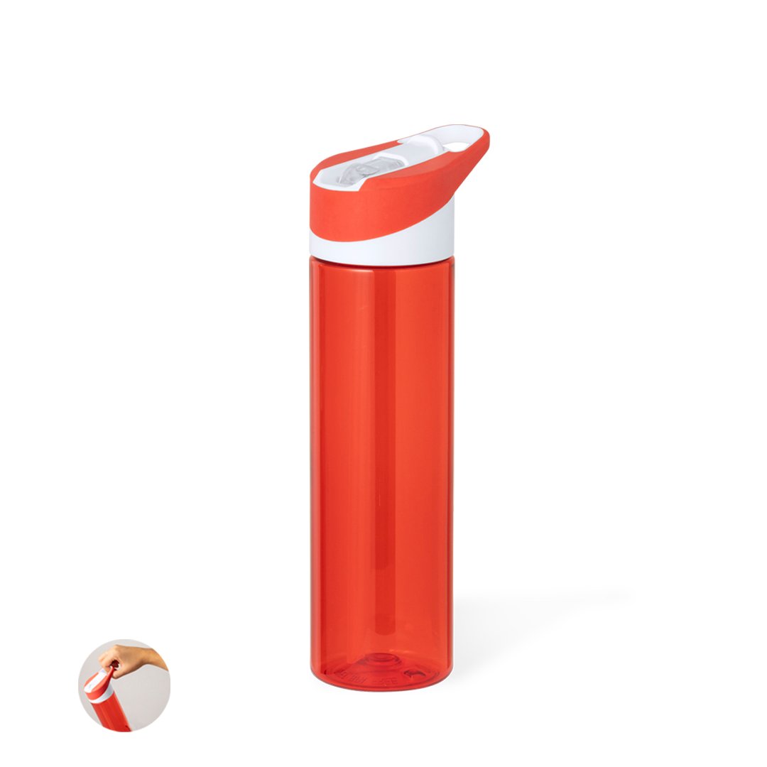 Bidón en RPET de 600 ml de capacidad. Libre de BPA, con sistema de fácil apertura, dosificador con pajita incluida y asa de transporte a juego. Disponible en variada gama de colores brillantes y presentado en atractiva caja de diseño kraft.El material RPET se elabora a partir de plástico reciclado, para así fomentar la reutilización de residuos plásticos y ayudar a la sostenibilidad del planeta.