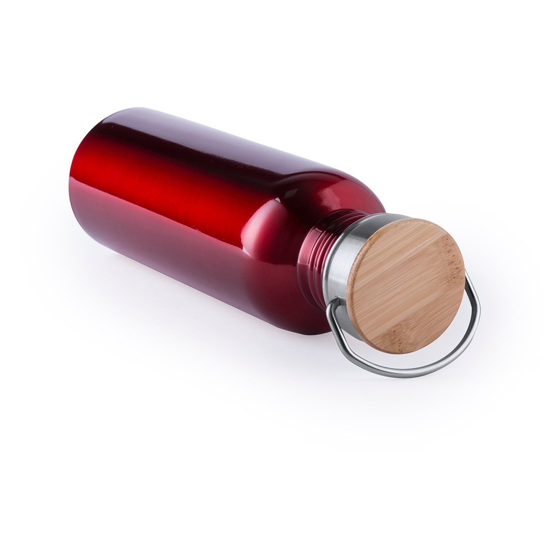 Bidón de estilo retro y 800ml de capacidad. Cuerpo en acero inox y en variada gama de colores brillantes. Tapón de seguridad a rosca en acero inox, con detalle en madera y asa de transporte vintage. Presentado en una atractiva caja de diseño.