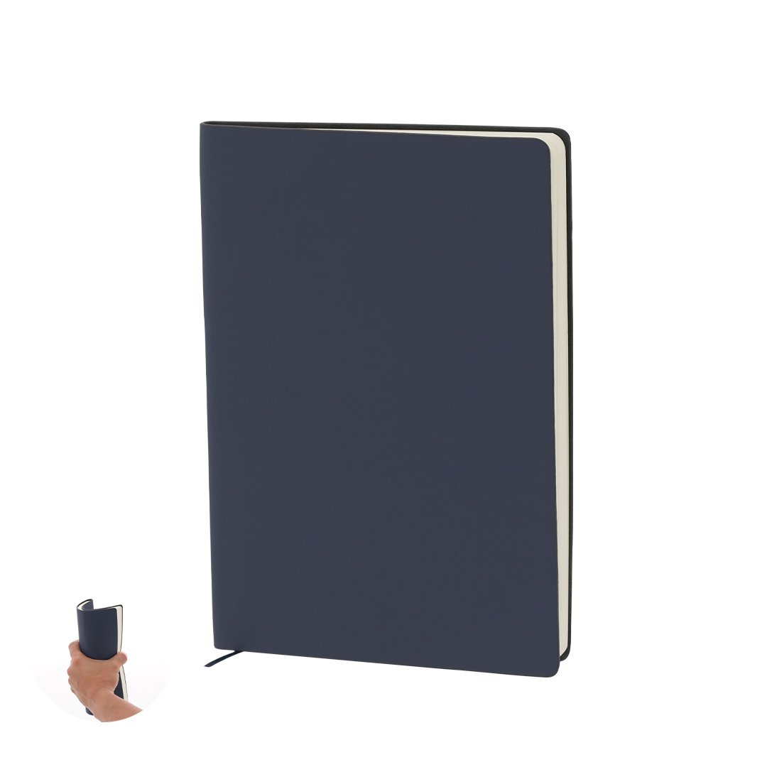 Bloc de notas con tapas blandas fabricadas en PU reciclada. Interior con 80 hojas color crema de disposición a una raya. Incluye marcapáginas a juego. Con distintivo PU Reciclada. La PU reciclada destaca por su resistencia y elasticidad. Este material reciclado y reciclable es una opción sostenible que rescata las fibras desechadas en los procesos de fabricación, minimizando así el desperdicio de material y contribuyendo a su vez a reducir el impacto ambiental, manteniendo a la vez sus propiedades originales.