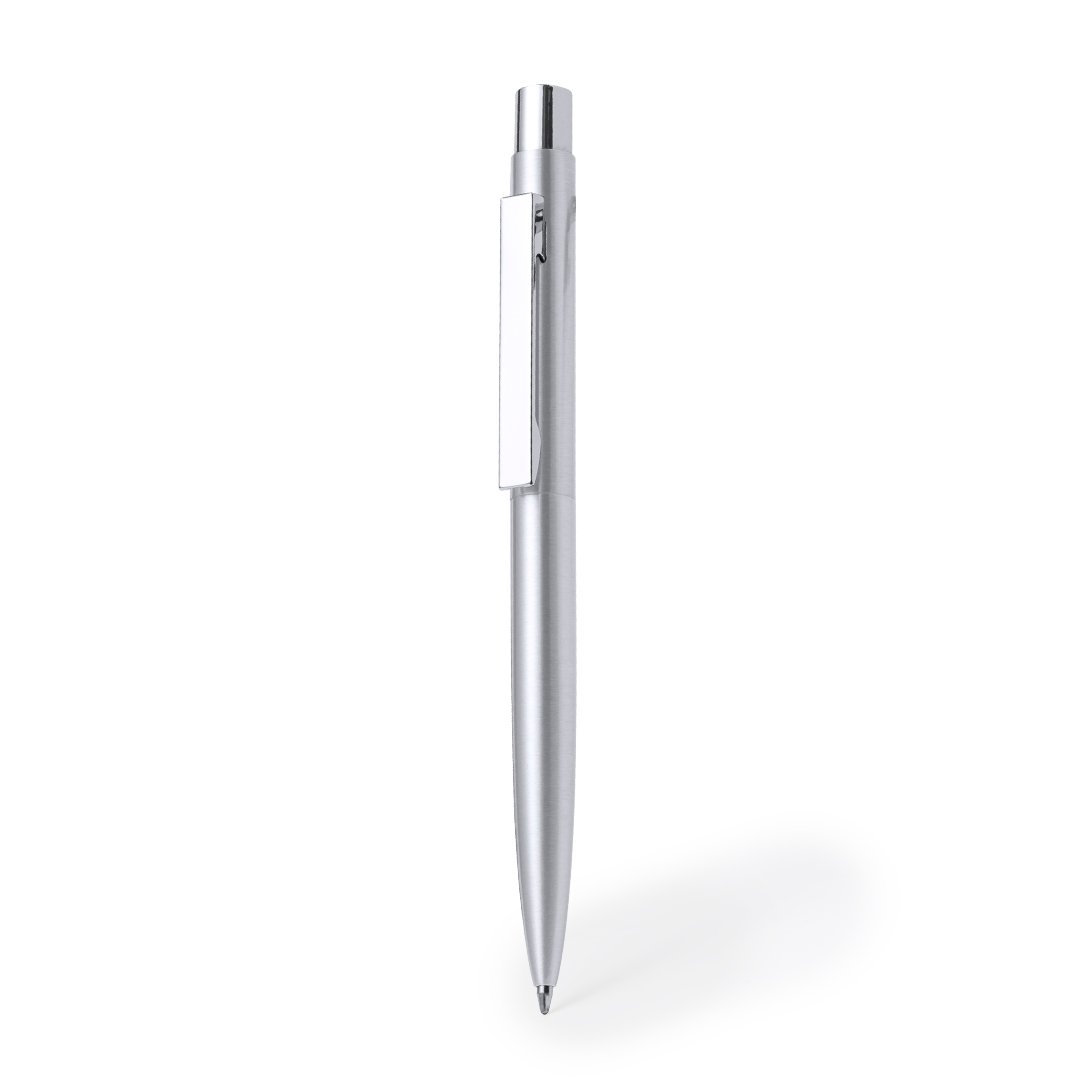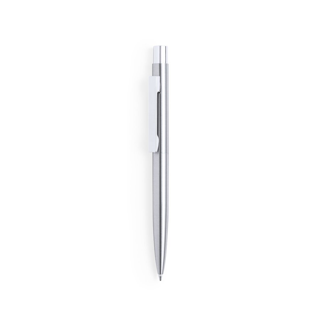 Bolígrafo eco-friendly fabricado en acero inox reciclado. De mecanismo pulsador, con cuerpo en acabado plateado y accesorios en cromado. Clip metálico y distintivo acero inox reciclado en la parte superior del bolígrafo. Cartucho jumbo y tinta azul.Set presentado en estuche individual de diseño kraft con funda a juego.El acero es uno de los materiales más demandados y que puede encontrarse casi en todas partes, desde productos de uso diario a grandes construcciones. Con innumerables propiedades, entre las que cabe destacar la durabilidad y su alto grado de reutilización, convirtiéndolo en una alternativa muy valorada en soluciones de sostenibilidad. Debidamente tratado, permite obtener nuevos recursos de infinita utilización.