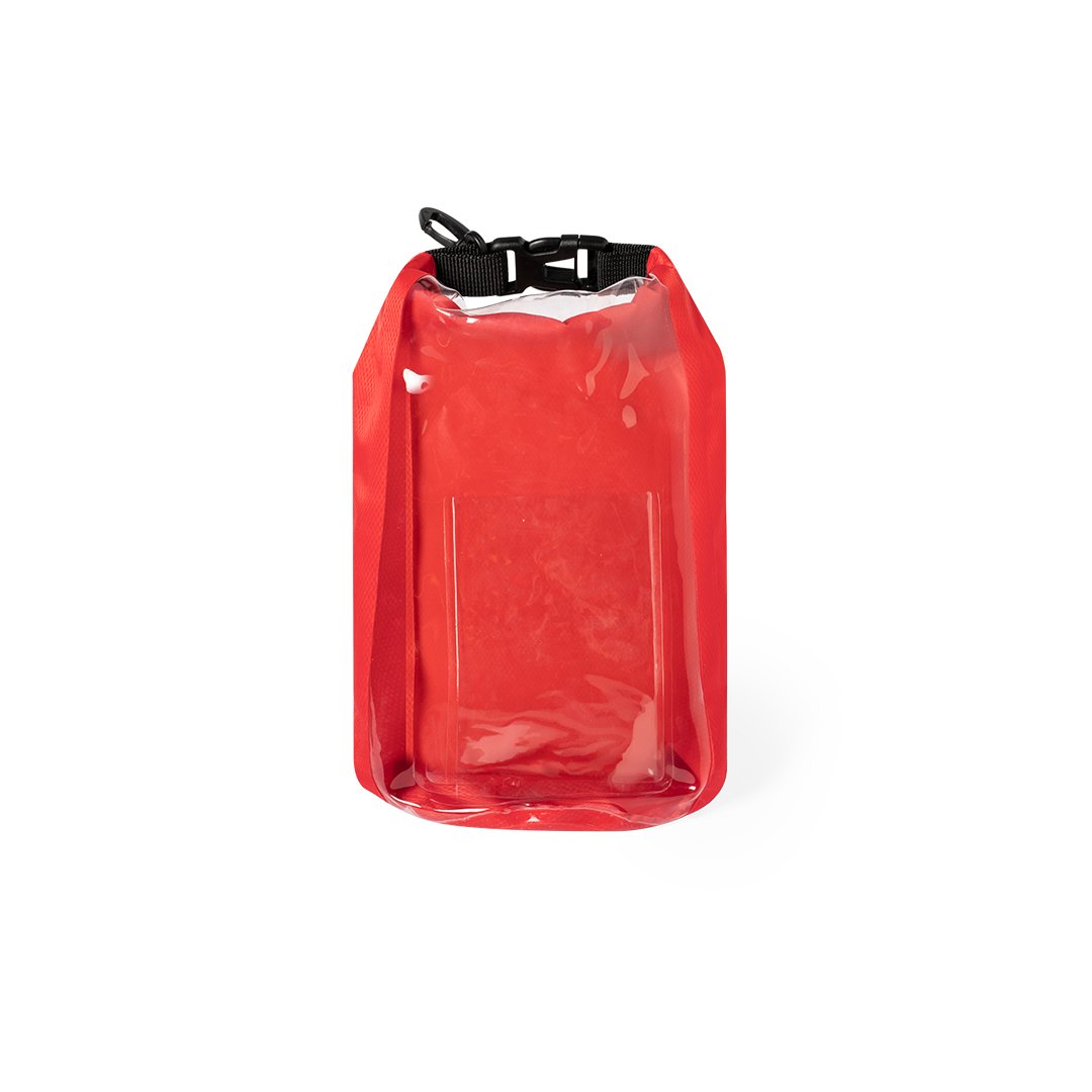 Bolsa impermeable de 2l de capacidad, con ventana transparente táctil para smartphone. Fabricada en resistente ripstop, con cierre de seguridad, asa con hebilla de ajuste y mosquetón. Disponible en variada gama de colores brillantes.