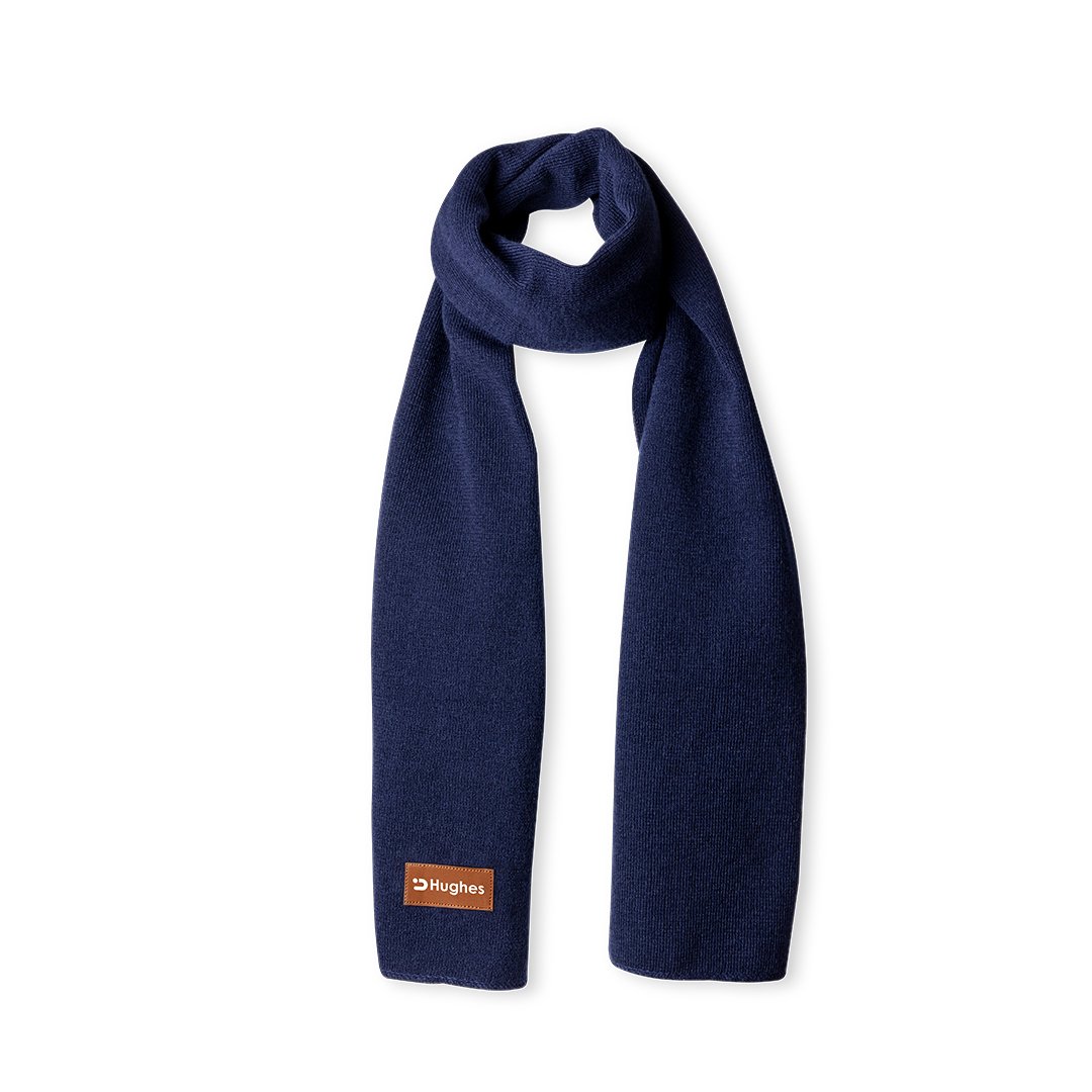 Bufanda unisex fabricada en material acrílico elástico. Con parche en polipiel cosido para marcaje y disponible en variada gama de colores.