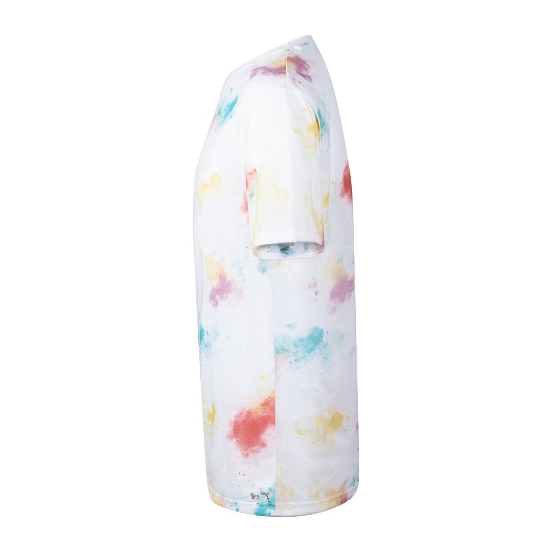 Camiseta para adulto en material 100% poliéster transpirable de 160g/m2 con textura de algodón. Con cuello redondo y atrevido diseño con estampados inspirado en una paleta de pinturas. Disponible en tallas S, M, L, XL, XXL.