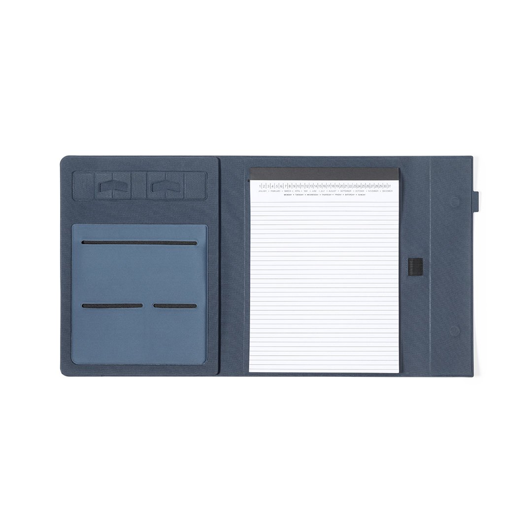 Carpeta fabricada en poliéster 600D RPET, elaborado a partir de plástico reciclado, para así fomentar la reutilización de residuos plásticos y ayudar a la sostenibilidad del planeta. Con cierre magnético y distintivo RPET. Interior con soporte para smartphone y multitud de compartimentos para tarjetas, incluidos soporte para bolígrafo y bloc con 20 hojas de disposición a una raya. Presentada en atractiva caja individual de diseño y disponible en variada gama de colores.