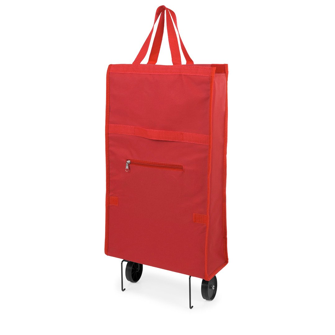 Carro de compra plegable en resistente poliéster 600D de variada gama en vivos colores. Con asas de nylon reforzadas a juego, bolsillo de cremallera frontal a juego y soportes metálicos. Plegado de pequeño tamaño.