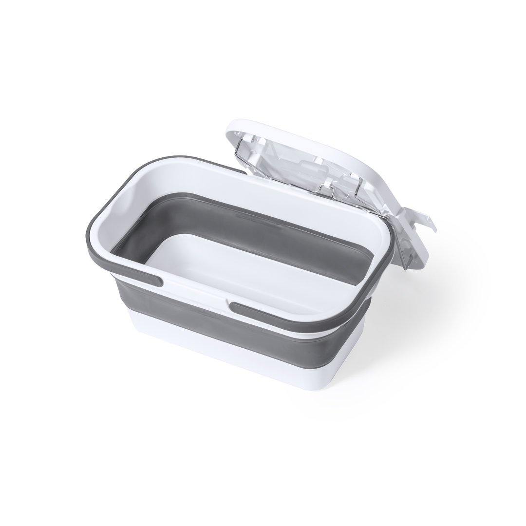 Cesta nevera para picnic plegable y multifunción. Fabricada en resistente material PP de acabado blanco, con capacidad de 16 litros. Tapa convertible en mesa mediante 2 patas plegables, con soportes para smartphone o tablet y bidón integrados. Incluye 2 asas de transporte plegables en gris. Una vez plegada ocupa poco espacio, ideal para un fácil almacenamiento.