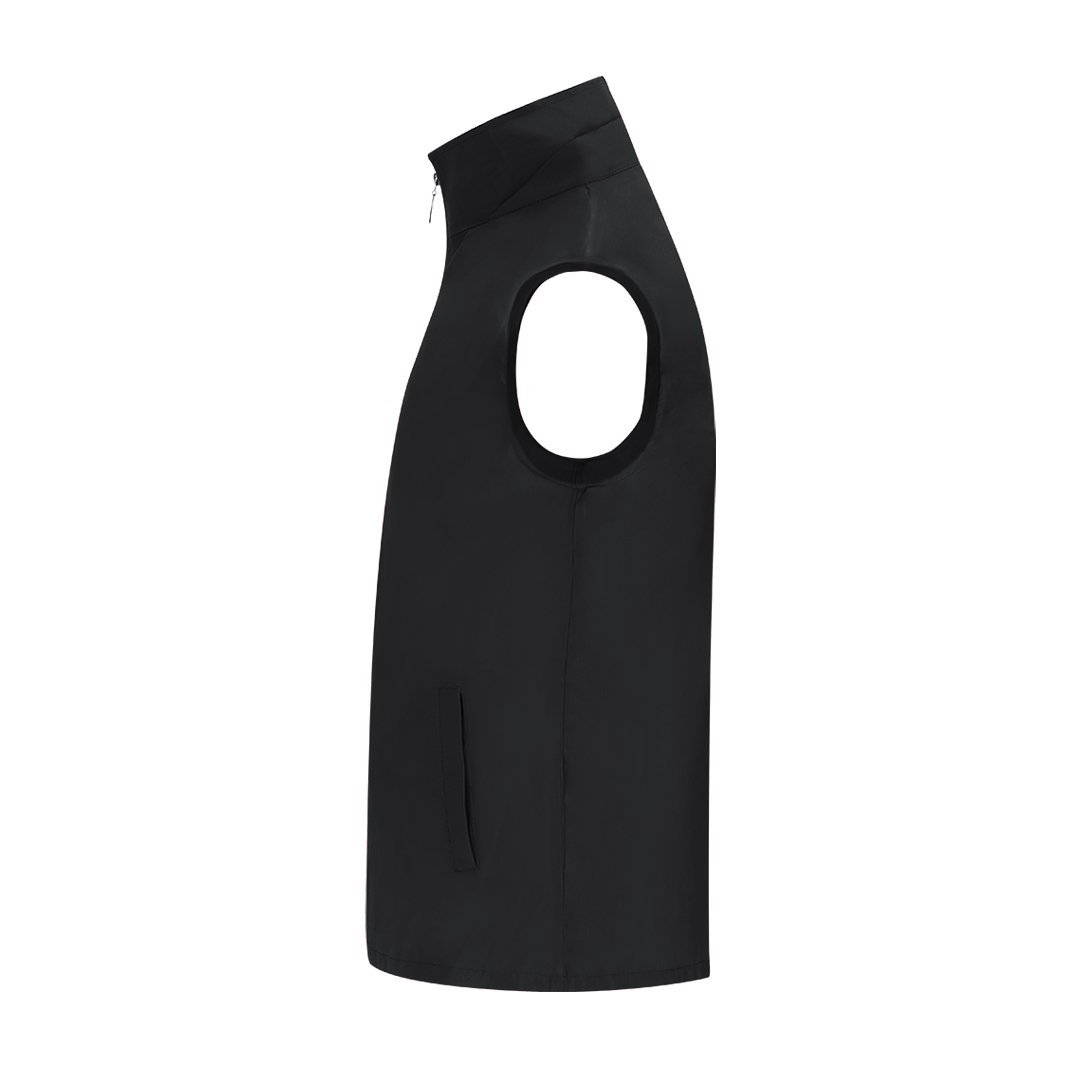 Chaleco Unisex de tejido ligero y transpirable con interior confeccionado en tejido de malla blanco. Cremallera frontal a tono y tirador plateado, con un bolsillo exterior en cada lateral.
