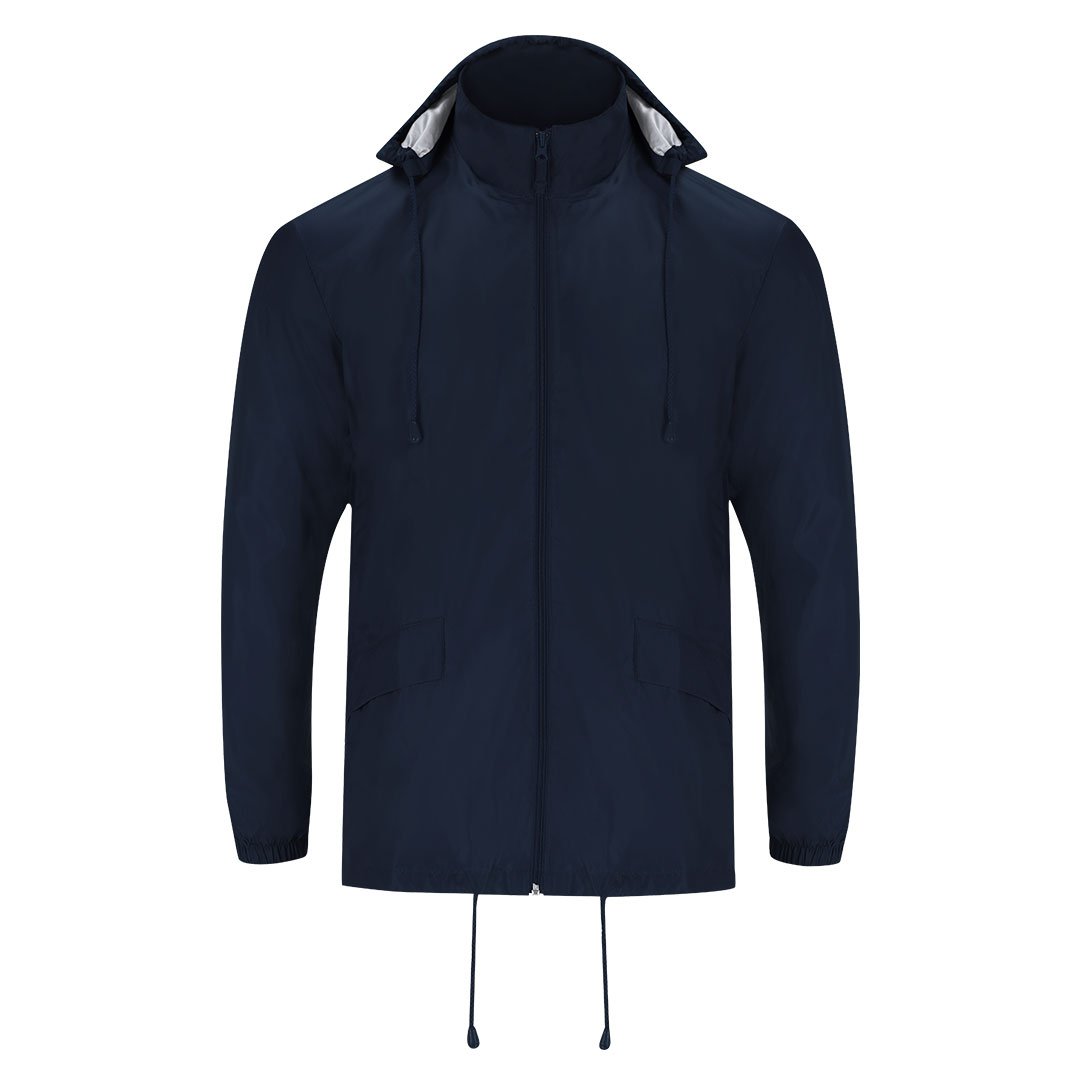 Chubasquero unisex de cuello alto y capucha extraíble. La capucha cuenta con cordones ajustables para un ajuste personalizado y velcro para facilitar su plegado y guardado. Su interior incorpora un recubrimiento de plata. Cuenta con cremallera central y tirador al tono. Incluye: dos bolsillos laterales con solapa, puños elásticos que garantizan un ajuste cómodo y un bajo ajustable con cordones interiores que permiten un ajuste adicional. Dispone de una goma elástica en el interior de uno de los bolsillos, facilitando el plegado y almacenamiento del chubasquero cuando no está en uso.