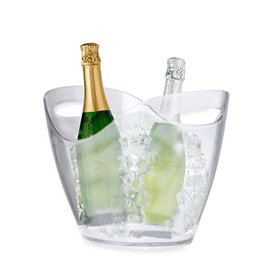 Elegante cubitera transparente de 8 l de capacidad fabricada en resistente PS. Este accesorio combina estilo y funcionalidad, manteniendo frías las bebidas por su gran tamaño. Presentada individualmente en bolsa de burbujas.