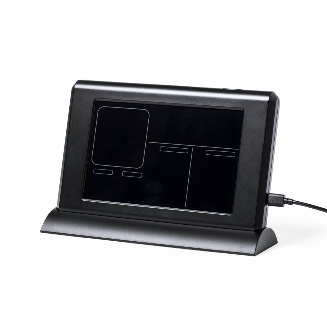 Estación meteorológica premium multifunción, fabricada en resistente ABS de acabado negro satinado. Incluye pantalla retroiluminada, de fácil lectura y con gráficos en color. Con sensor inalámbrico para temperatura/humedad exterior y sensor integrado para temperatura/humedad interior. Funciones alarma y calendario, con APP disponible -compatible con iOS/ Android- para control remoto a través de red WiFi y funciones extra. Adaptador de corriente y cable USB incluido de 1 m de largo, con soporte para montaje en la pared. Sensor externo con alimentación a pilas (2xAAA no incluidas). Presentación en caja individual de diseño kraft, con manual de instrucciones en español e inglés.