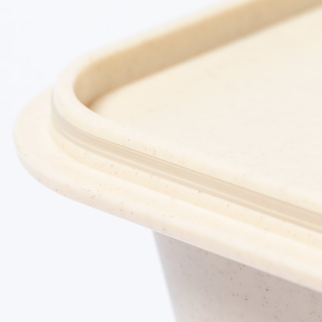 Fiambrera fabricada en PP veteado libre de BPA. De 1 l de capacidad, incluye cinta elástica de seguridad con tenedor y cuchillo. Certificación Food Grade, garantizando la seguridad cuando los alimentos entran en contacto con el material usado para fabricar el producto.