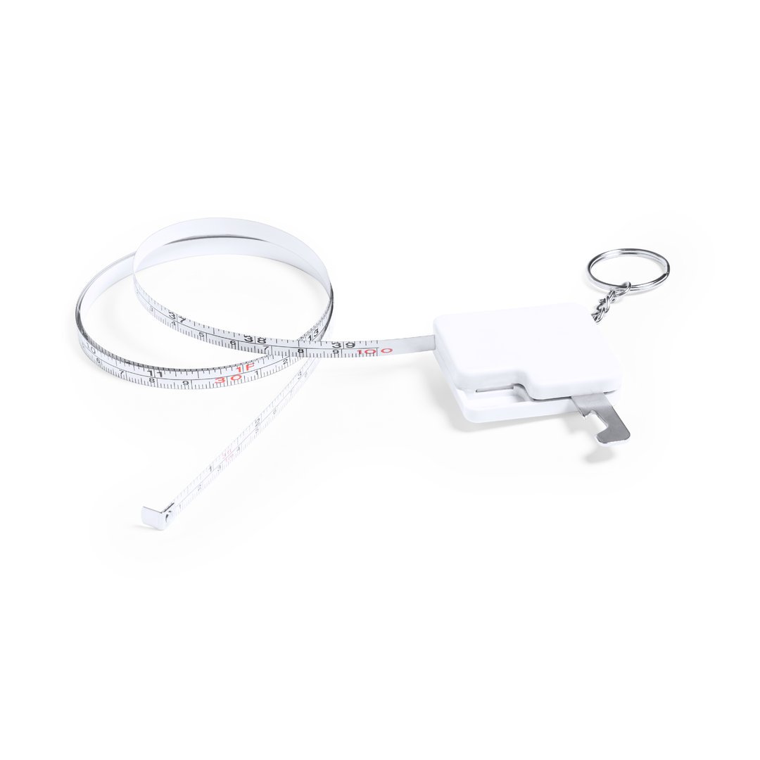 Flexómetro 1 m en resistente ABS blanco, con abridor metálico integrado en cuerpo. Con amplia superficie de marcaje y anilla metálica cromada. Hoja con medidas en centímetros y pulgadas