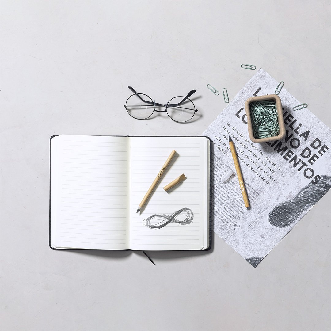 Lápiz eterno de línea nature con capucha. Fabricado en papel reciclado y con punta en caña de trigo, fomentando la utilización de materias primas naturales y reducir las emisiones contaminantes. Reutilizable y con escritura infinita, para así usar siempre el mismo lápiz y no generar residuos.