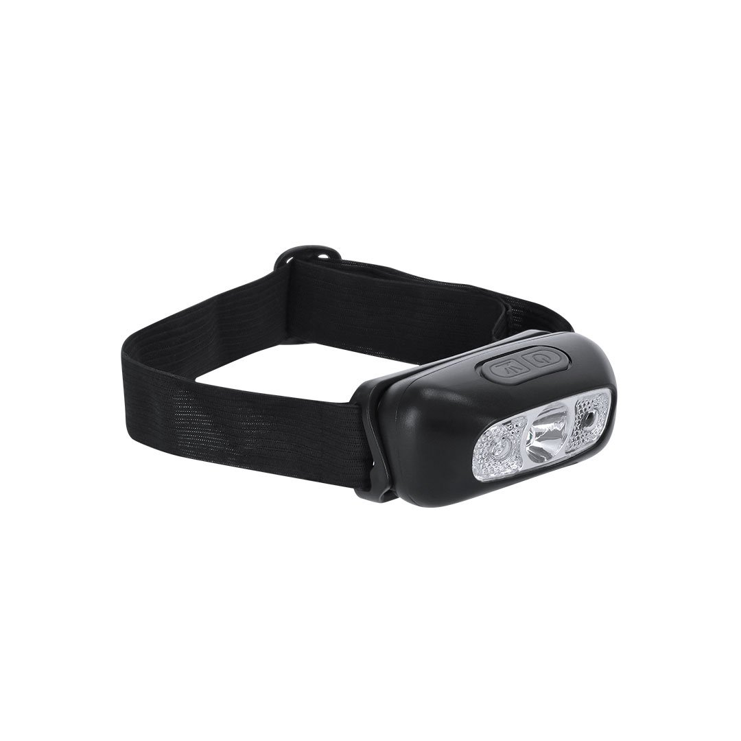 Linterna frontal con cinta elástica ajustable para cabeza, brazo… Con luz LED y 3 posiciones de iluminación (2 posiciones fijas y 1 posición intermitente). Con batería recargable de 400 mAh incorporada y cable de carga incluido de USB-A a USB-C en color negro.