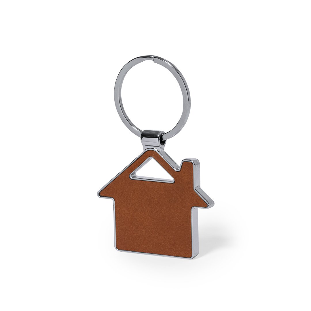 Llavero fabricado en cuero reciclado. En tono marrón, incluye distintivo cuero reciclado en una cara, con lado opuesto liso para impresión y anilla metálica cromada. Disponible en cuatro diseños:A: CasaB: CocheC: CírculoD: RectánguloPresentado en bolsa individual reciclada de cartón kraft.El cuero reciclado rescata las fibras desechadas en los procesos de fabricación del cuero, minimizando el desperdicio de material, contribuyendo a reducir el impacto ambiental y manteniendo a la vez sus propiedades originales.