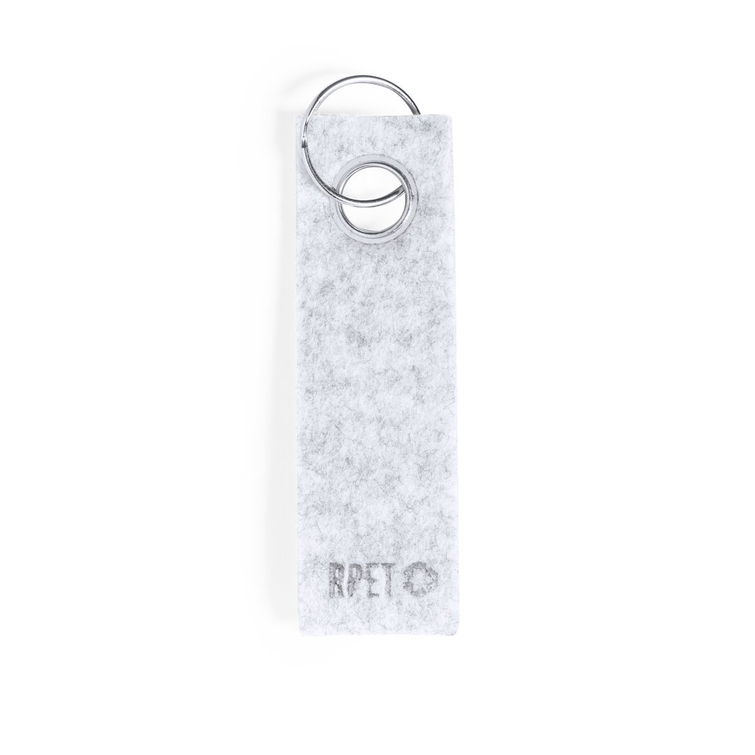 Elegante llavero con cinta fabricada en fieltro RPET y ojal metálico cromado. Con distintivo fieltro RPET en la cinta y anilla metálica cromada. El fieltro RPET es fruto de la combinación del proceso de reciclaje de materiales plásticos junto con la técnica milenaria de fabricación del fieltro, dando como resultado un material de eco-tendencia que, además de ser de origen reciclado, también se convierte en reciclable.