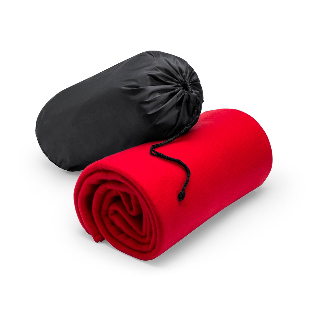 Manta de 120x150cm en variada gama de vivos colores. En material polar fleece de 180g/m2 y con funda de cierre de cordón en suave poliéster.