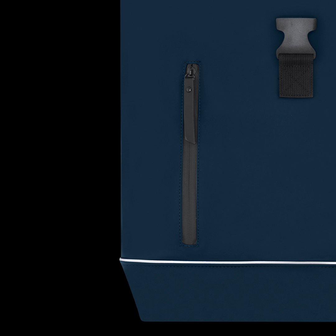 Mochila confeccionada en suave y resistente PU diseñada con tira reflectante en el frontal para mayor visibilidad. Con sistema de cierre enrollable con cremallera y hebilla ajustable. Interior de gran capacidad con compartimento interior acolchado para portátil de hasta 15 pulgadas. Dispone de un bolsillo frontal resistente al agua y cintas de hombros en PU y espalda acolchada para mayor comodidad. Incluye cinta trasera para ajuste en trolley o maleta, ideal para viajes y desplazamientos.