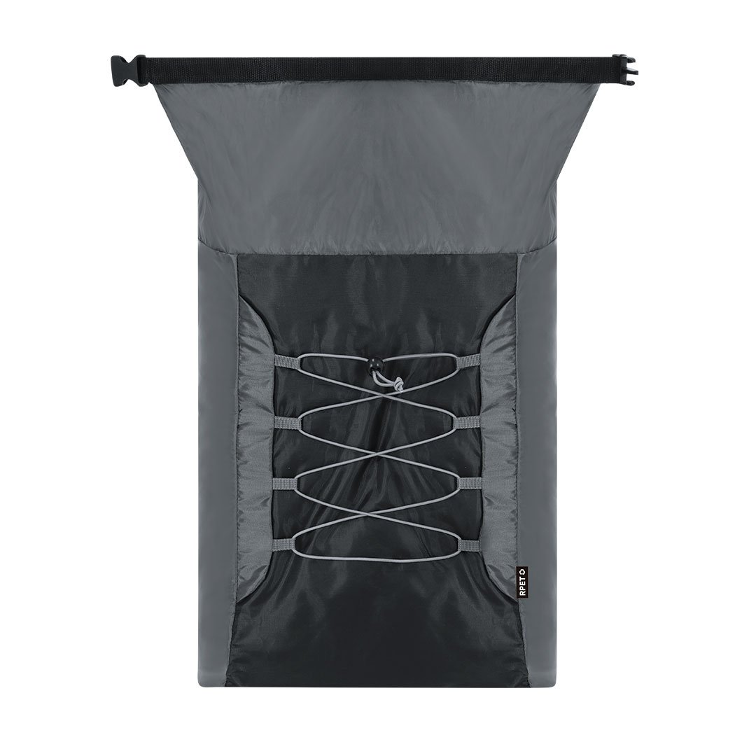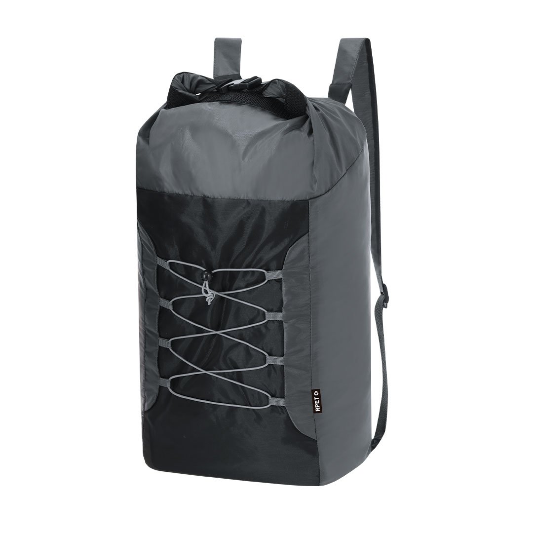 Mochila plegable en resistente poliéster RPET 210D y ripstop. Con cierre bucle en compartimento principal, cordones elásticos y cintas de hombros regulables.El material RPET se elabora a partir de plástico reciclado, para así fomentar la reutilización de residuos plásticos y ayudar a la sostenibilidad del planeta.