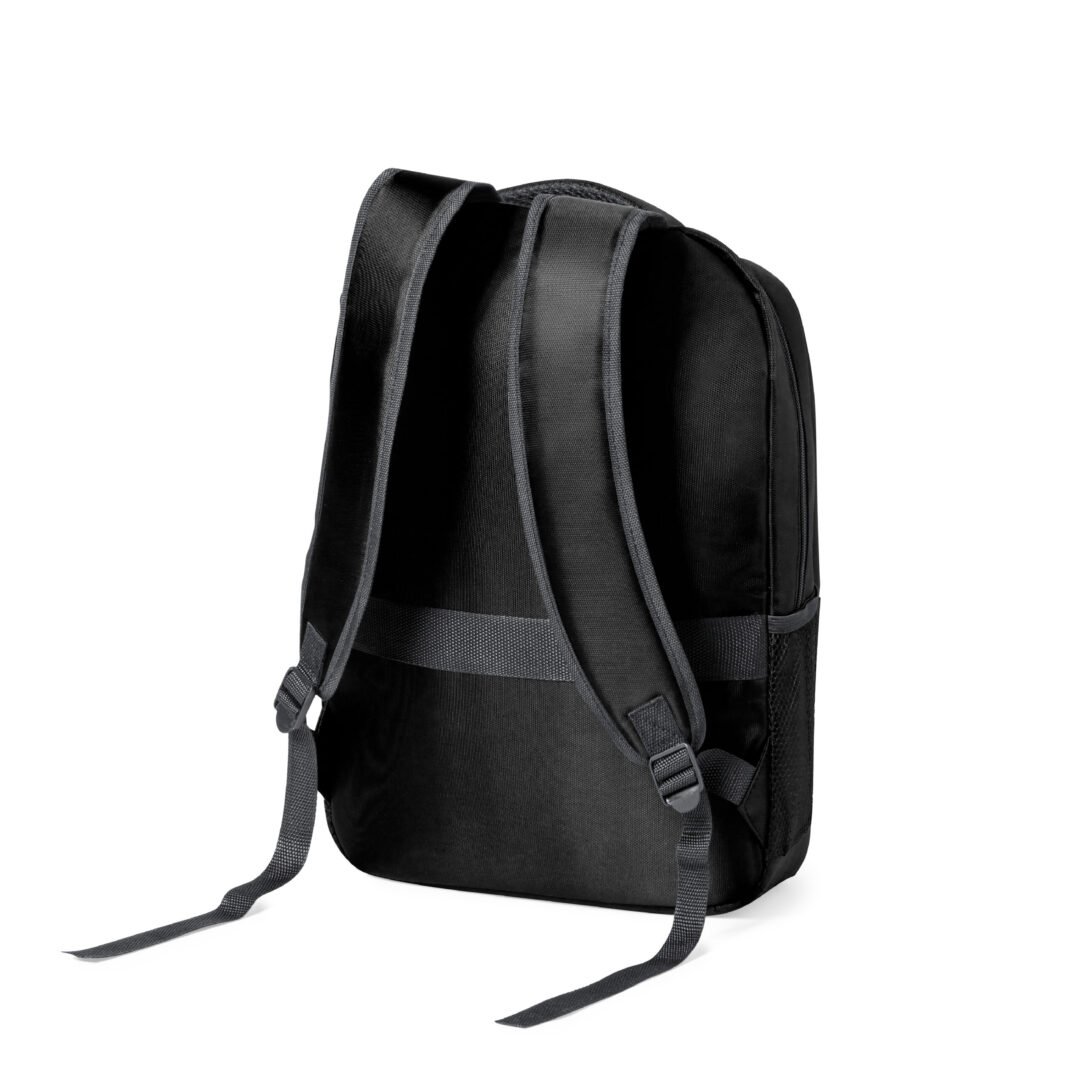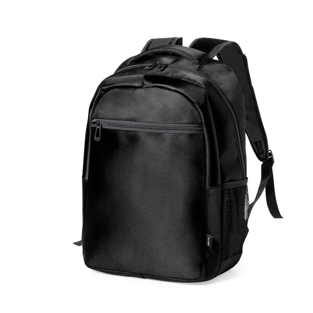 Mochila de alta calidad fabricada en RNYLON 420D. Compartimento principal con cierre de cremallera a juego y doble tirador. Incluye bolsillo exterior de cremallera y 2 bolsillos laterales de redecilla. Acolchado en asa, parte trasera y cintas para hombros, estas últimas ajustables. Interior con compartimento acolchado para ordenador portátil de hasta 15 pulgadas y accesorio en espalda para ajuste en trolley. Disponible en variada gama de colores, con distintivo reciclado en etiqueta exterior.El material RNYLON se elabora a partir de plástico reciclado, para así fomentar la reutilización de residuos plásticos y ayudar a la sostenibilidad del planeta.