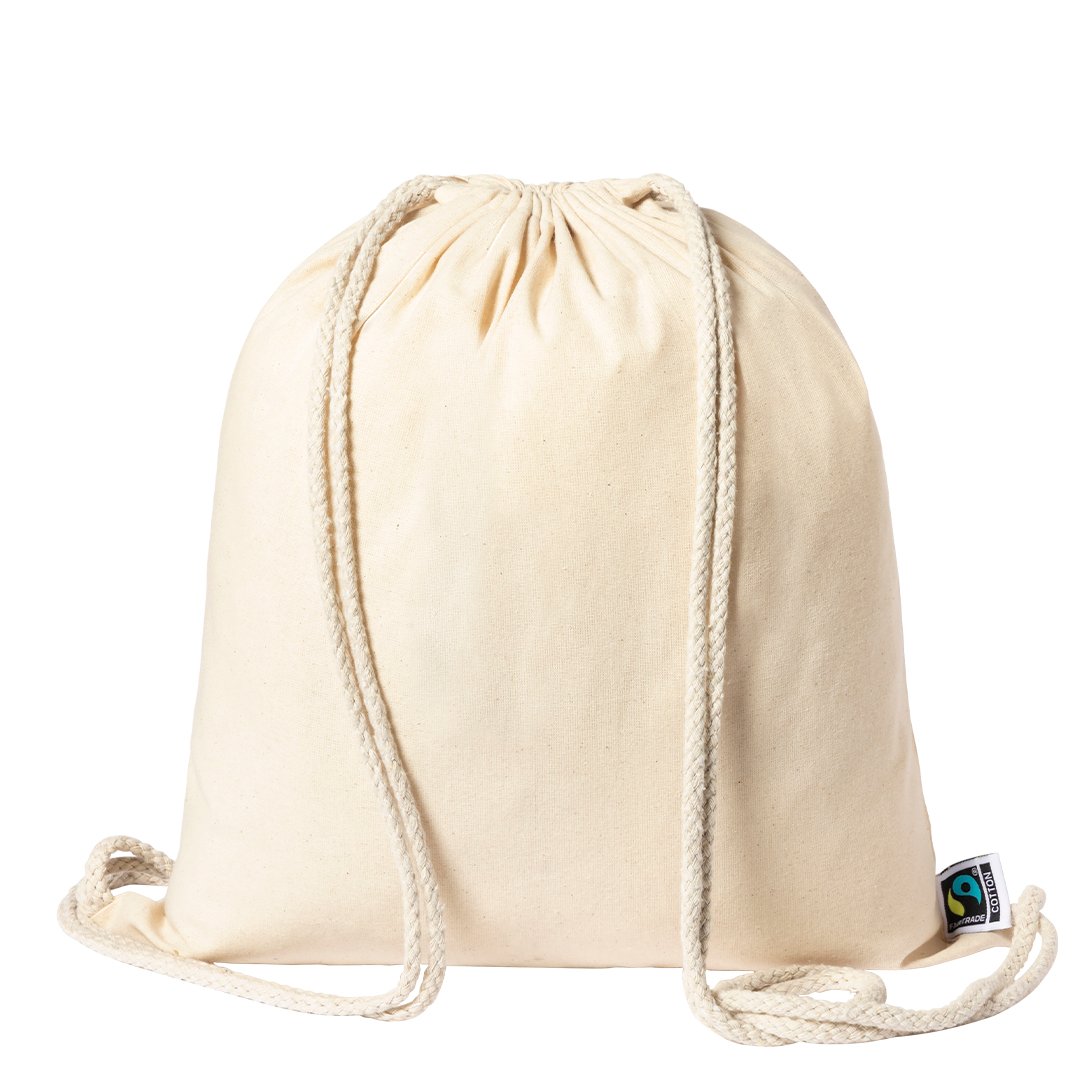Mochila de cuerdas de línea nature, fabricada en 100% algodón de 180g/m2 en tono natural. Con certificación Fairtrade (Comercio Justo) un sistema comercial solidario y alternativo al convencional que persigue el desarrollo de los pueblos y la lucha contra la pobreza. De acabado cosido, cordones de algodón y resistencia hasta 9kg de peso. Incluida etiqueta Fairtrade y hangtag distintivo en cartón reciclado.