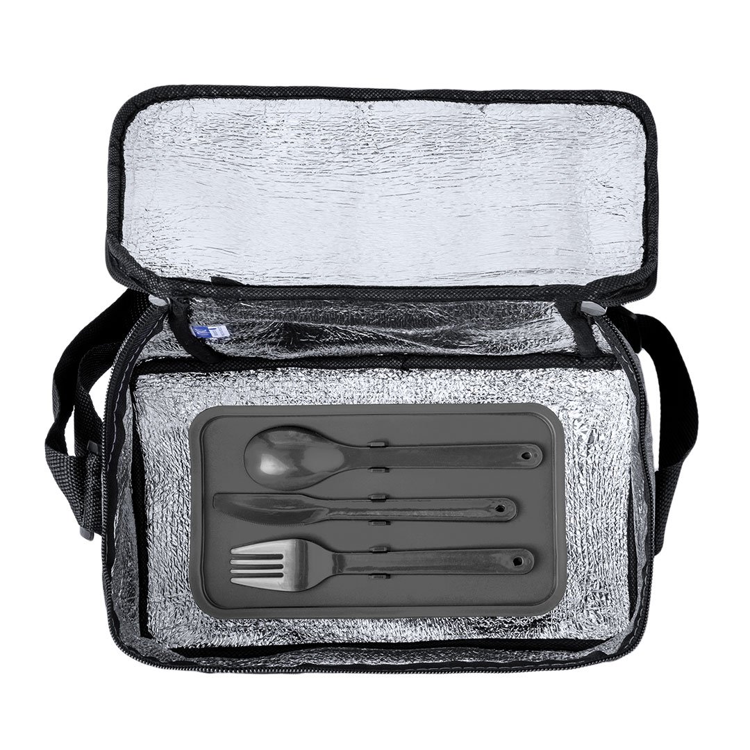 Fiambrera PP Reciclado, 2 Compartimentos 700 ml Incluida. Poliéster 600D RPET/ Aluminio.