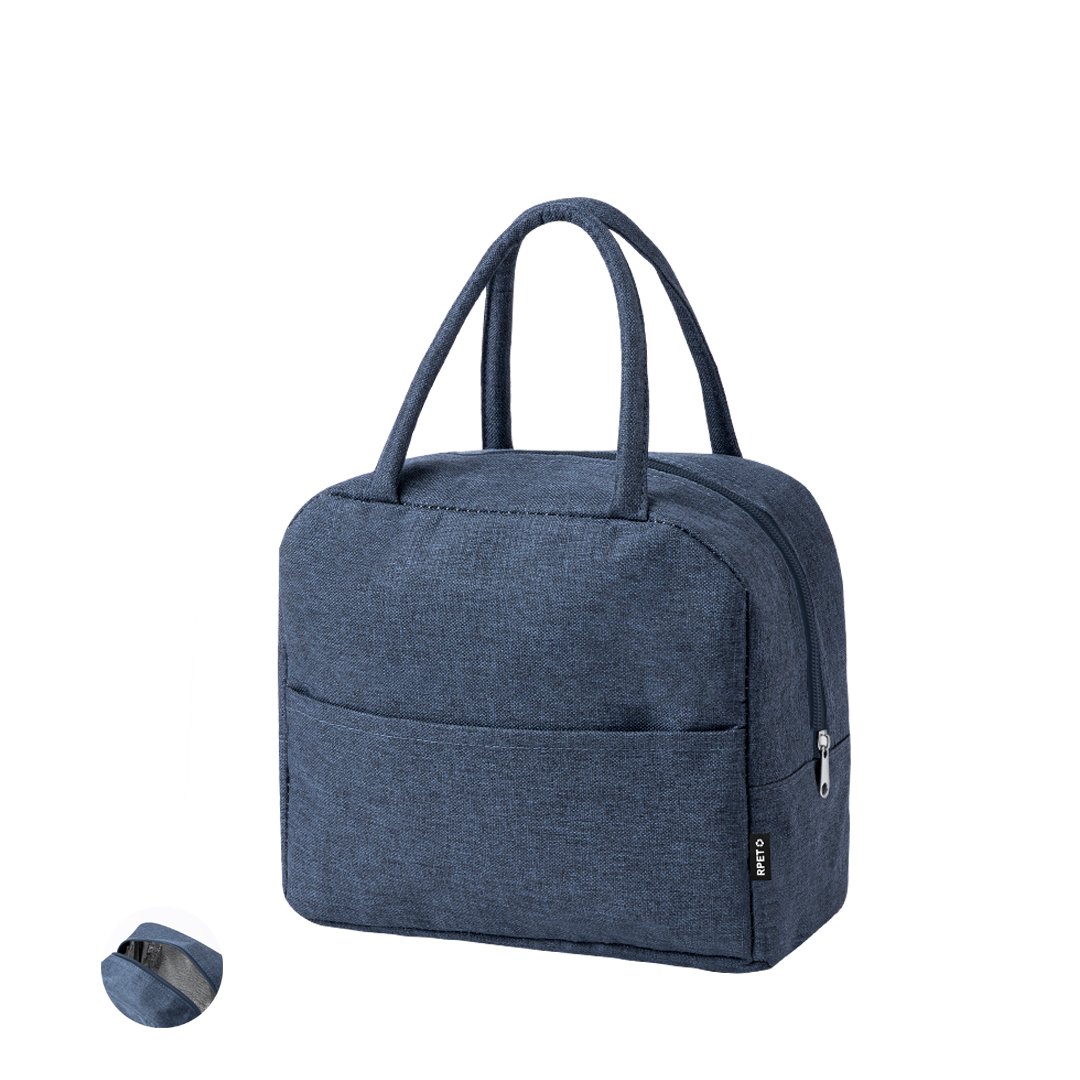 Nevera confeccionada en resistente poliéster 600D RPET. Compartimento principal con cierre de cremallera e interior en aluminio con base reforzada. Incluye bolsillo exterior y asas a conjunto, con logotipo RPET en etiqueta exterior.El material RPET se elabora a partir de plástico reciclado, para así fomentar la reutilización de residuos plásticos y ayudar a la sostenibilidad del planeta.