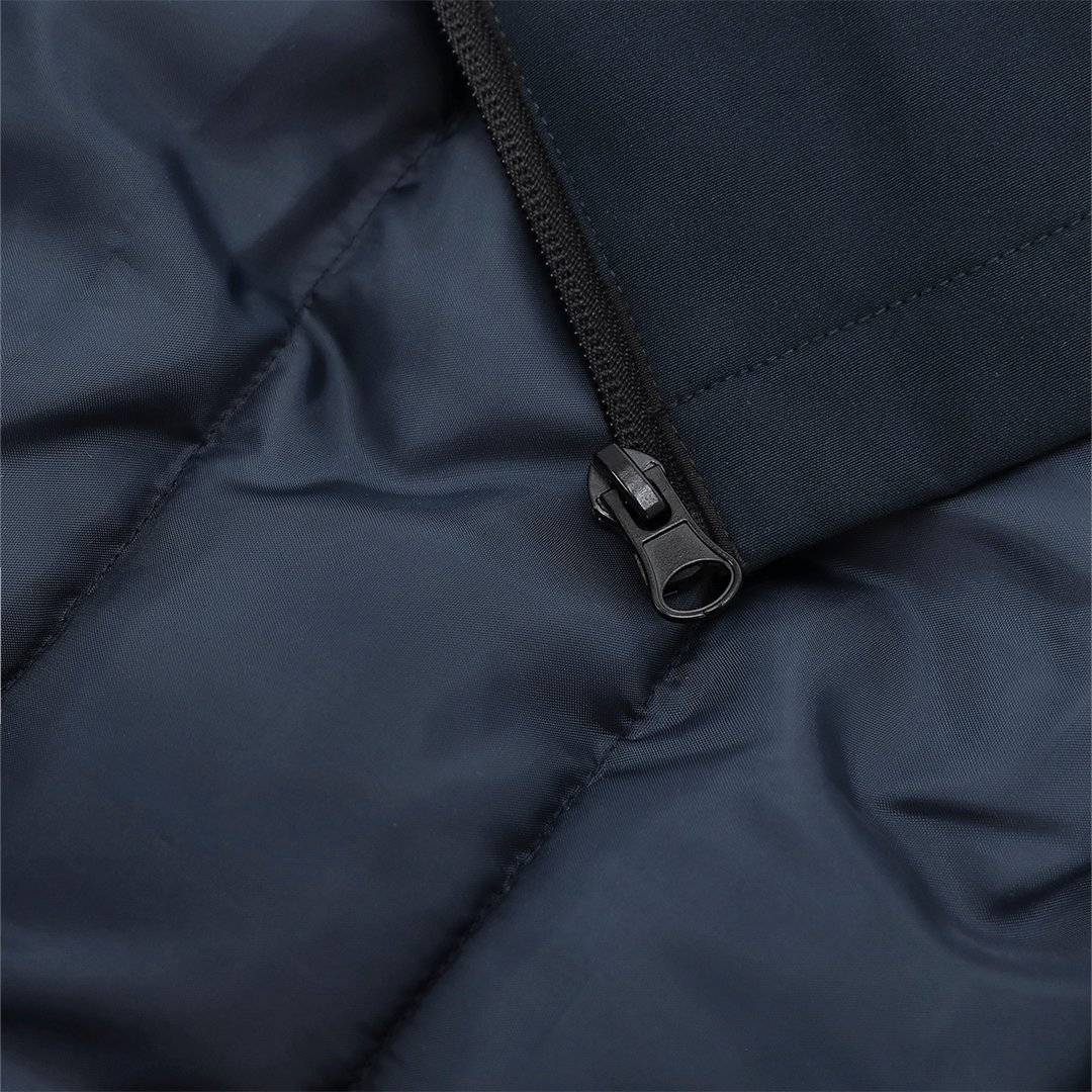 Parka unisex acolchada con capucha fija ajustable. Con cremallera frontal en color negro con protector de barbilla, que aporta mayor comodidad y protección. Dos bolsillos laterales con cierre de cremallera en color negro. Puños ajustables con velcro.