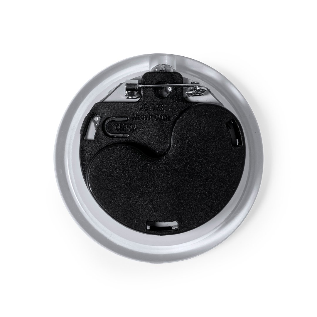 Original pin con luz LED, alimentado con pila de botón -incluida-. Incluye botón en la parte trasera con tres modos de iluminación (luz fija y luz intermitente, rápida o lenta). Con imperdible y presentado individualmente en caja de diseño kraft.