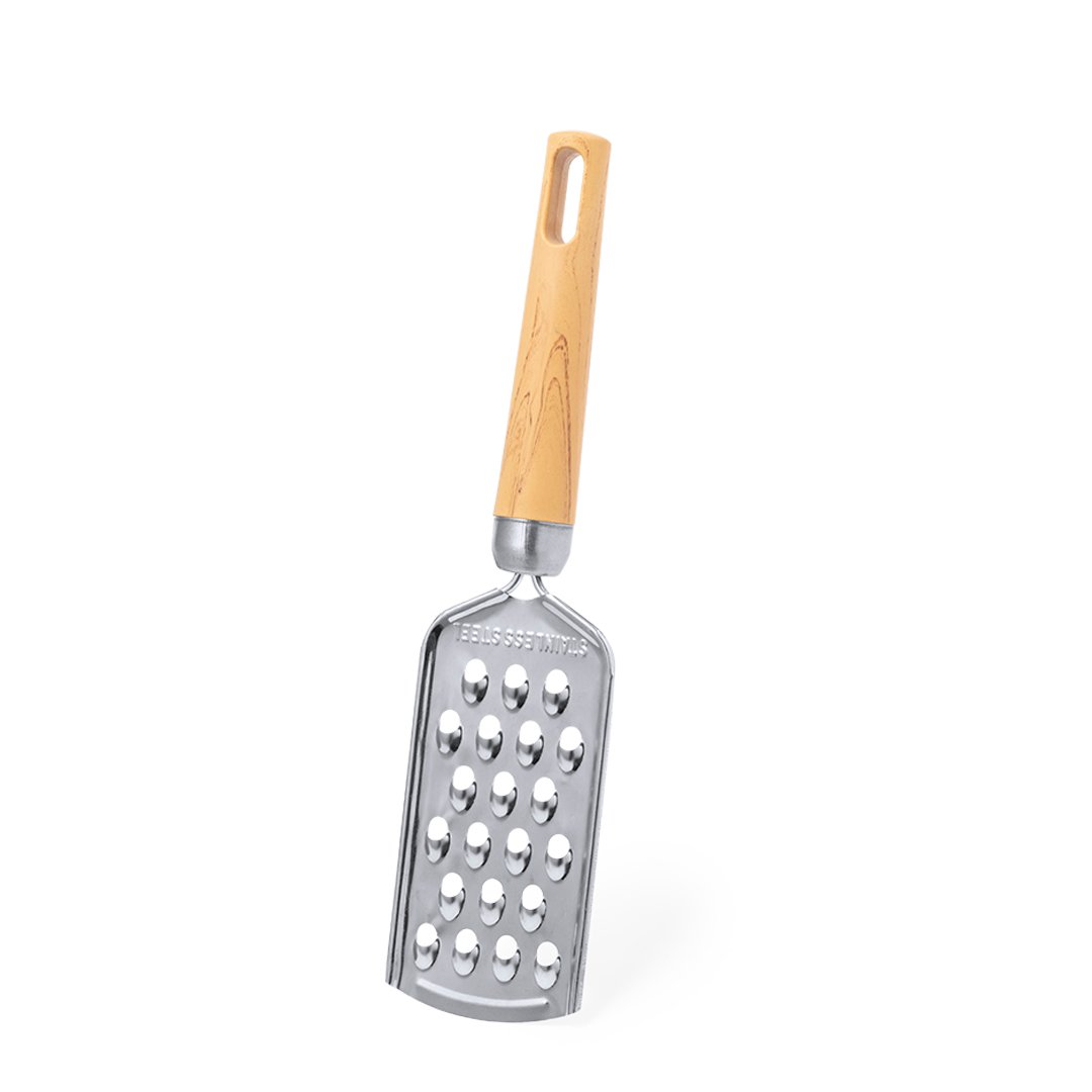 Rallador de mano fabricado en acero inox. Cuenta con un mango ergonómico fabricado en PP, con apertura que permite colgarlo cómodamente. Presentado en bolsa de papel reciclado.
