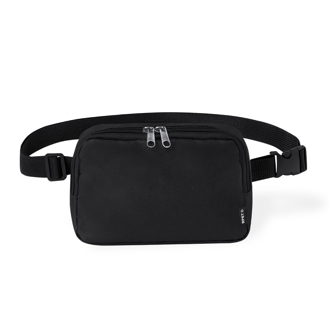 Riñonera de diseño rectangular fabricada en poliéster RPET 600D. Cuenta con un bolsillo central cierre de cremallera, con doble tirador, y cinta ajustable con cierre de hebilla. Además incluye etiqueta distintiva de RPET y viene presentada individualmente en bolsa reciclada.El material RPET se elabora a partir de plástico reciclado, para así fomentar la reutilización de residuos plásticos y ayudar a la sostenibilidad del planeta.
