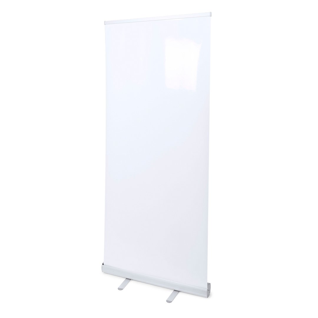 Panel de impresión roll up de 85x200cm en resistente polipropileno de alta densidad especialmente diseñado para marcaje a todo color. Con soportes de aluminio y gancho de sujeción. Presentación enrollado en funda de tela.