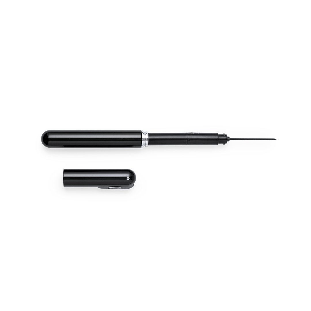 Sacacorchos con bomba de aire integrada, para una extracción del tapón de corcho fácil y segura. Fabricado en resistente material ABS y con cortacápsulas. Presentado en atractiva caja individual de diseño.