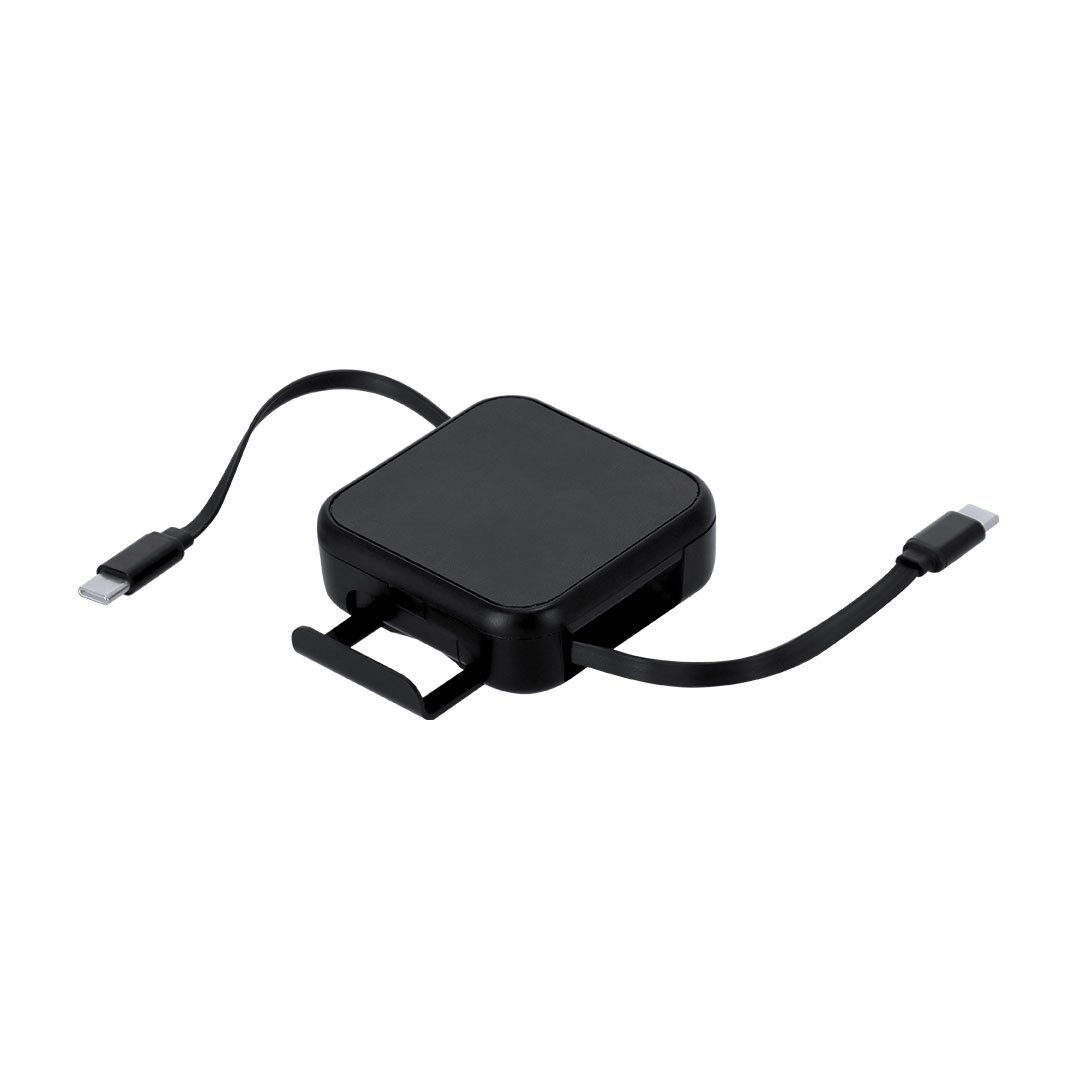 Sets de cables cargadores para tu smartphone fabricado en ABS reciclado (RABS). Cuenta con un cable retráctil de 100 cm de carga rápida y transferencia de datos USB-C de 100 W, junto con un adaptador USB-A y un adaptador microUSB/Lightning 2 en 1. El RABS es un plástico altamente reciclable de gran resistencia y con multitud de aplicaciones que lo convierten en una solución eco-friendly. En el interior, encontrarás un expulsor de la tarjeta SIM, almacenamiento para una nano SIM y una tarjeta SIM, y un soporte para teléfono integrado, perfecto para ver vídeos o hacer videollamadas. Fácil de transportar gracias a su diseño compacto.