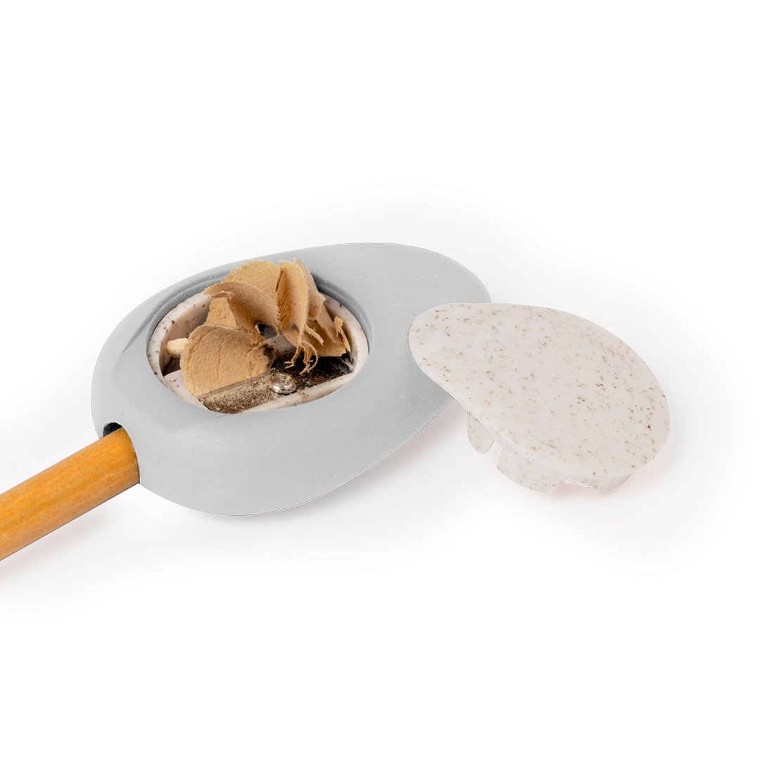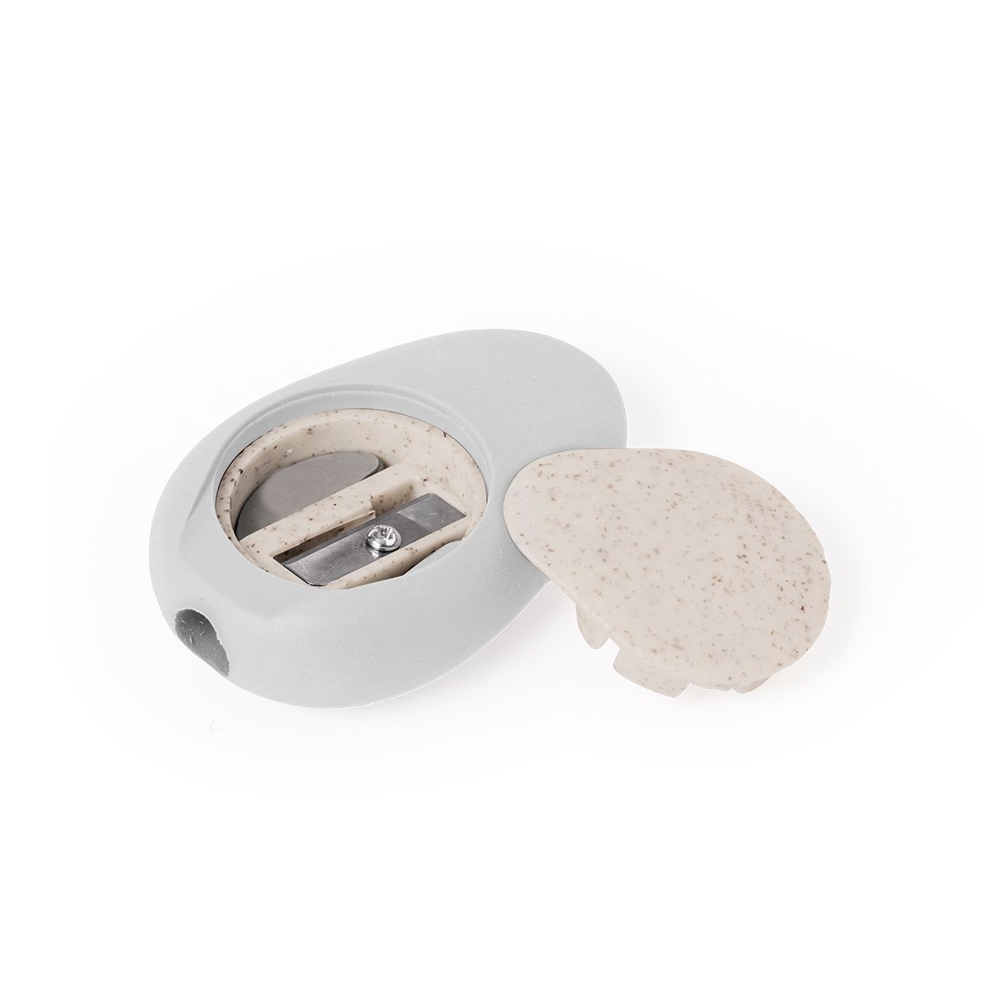 Original sacapuntas fabricado en caña de trigo. Práctico sacapuntas de bolsillo de inspiración natural por su forma de piedra pulida con práctica tapadera fabricada en fibra de trigo, cómodo de usar y guardar. La caña de trigo fomenta la utilización de materias primas naturales, reduciendo así las emisiones contaminantes.
