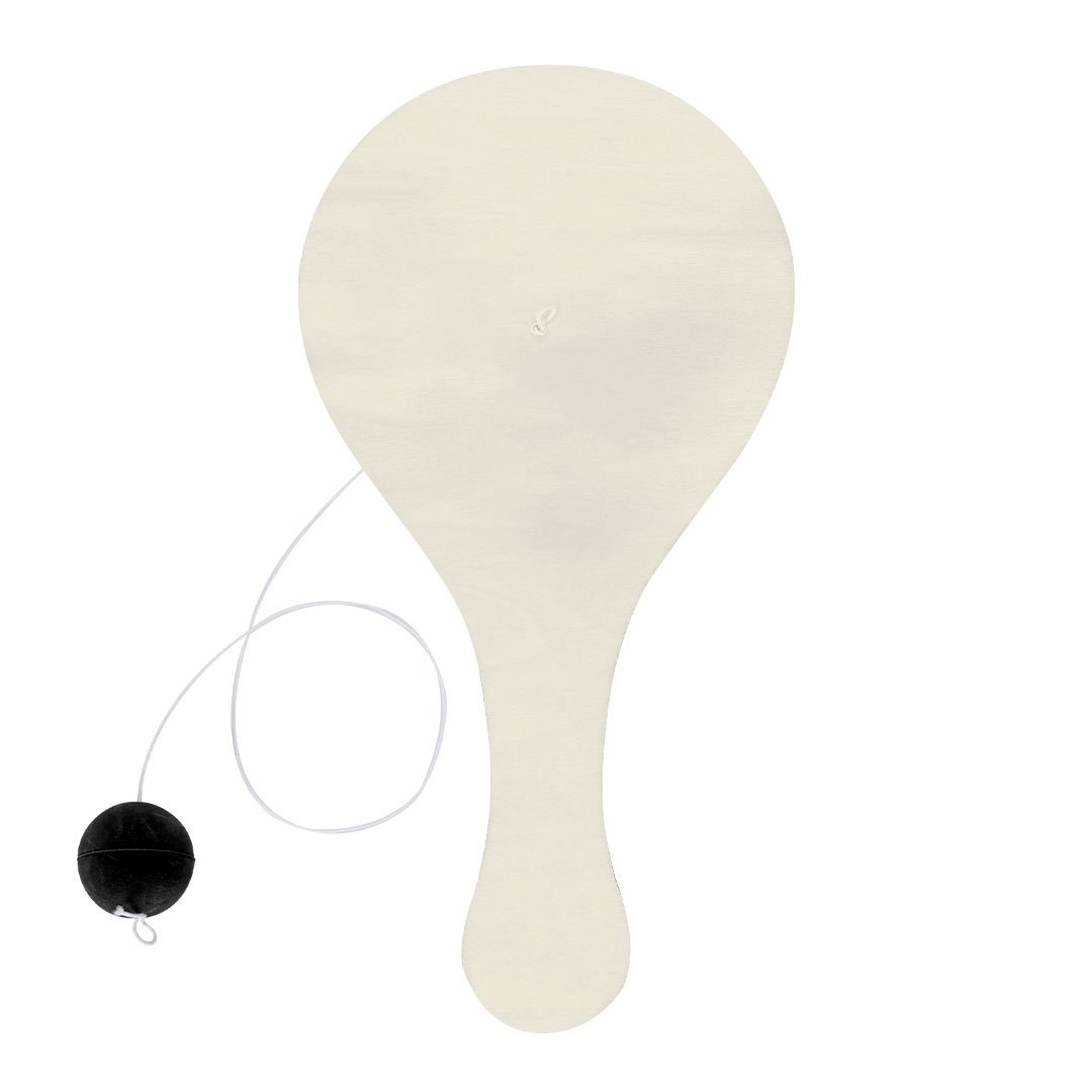 Set creativo de raqueta de madera con pelota, ideal para colorear y jugar.Incluye divertidos dibujos en el frontal para personalizar con las 5 ceras de colores incluidas. La pelota está unida a la raqueta mediante un cordón elástico, perfecto para disfrutar del juego mientras desarrollas la creatividad.