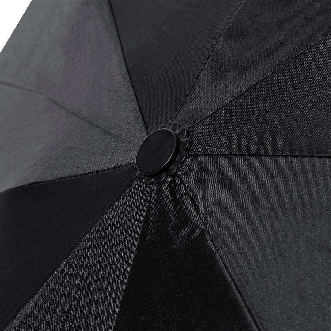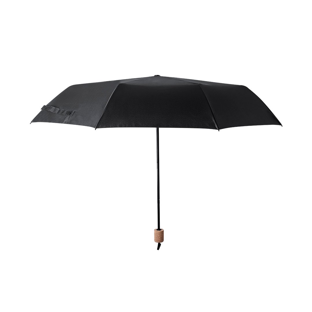 Vaso Térmico Acero Inox Reciclado/ Corcho. 550 ml. Paraguas Pongee 190T RPET. Varillas Fibra de Vidrio. 21″. Sistema Antiviento. Mango Corcho. Funda Pongee RPET.