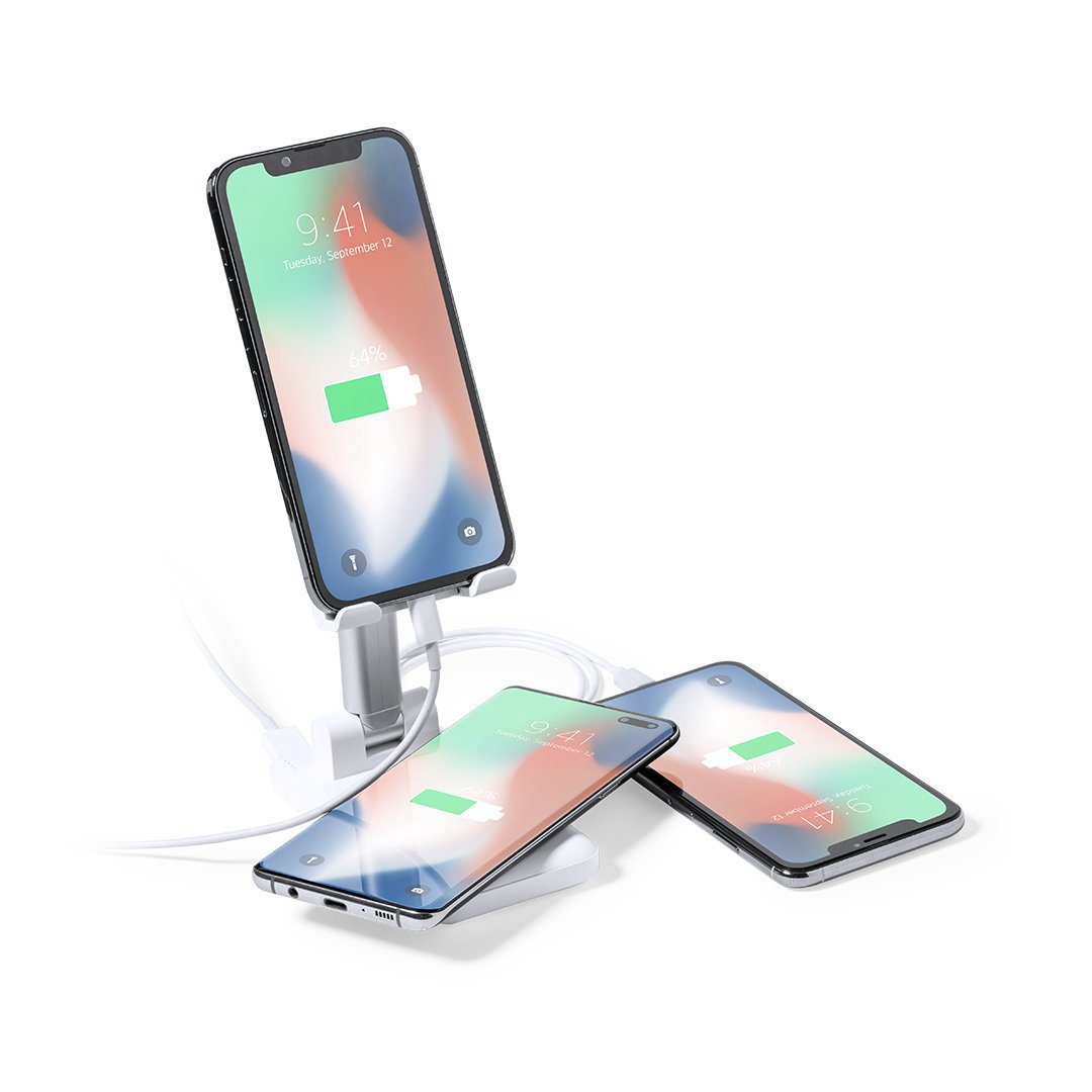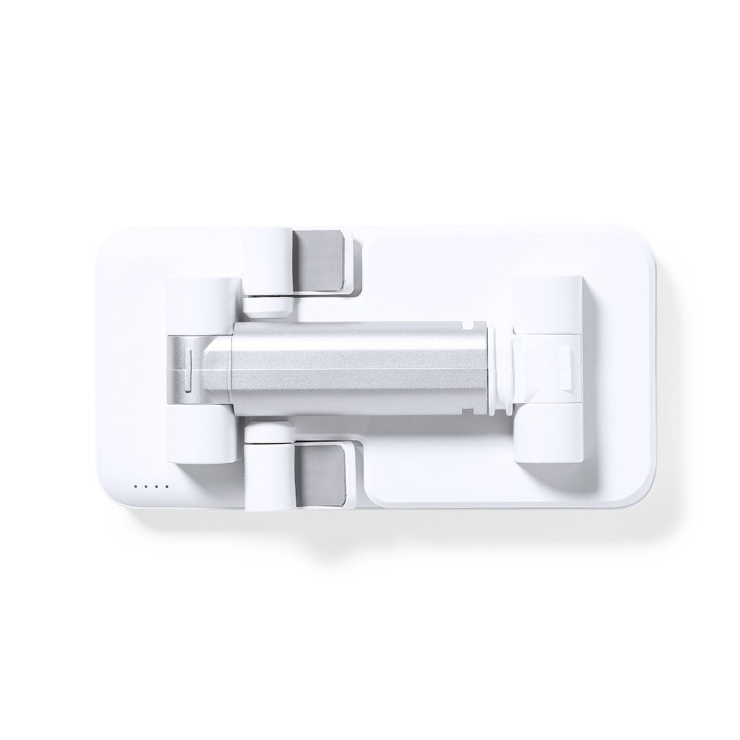 Soporte multifunción plegable todo en uno, fabricado en resistente ABS blanco. Regulable en altura y ángulo para una óptima visualización de la pantalla del smartphone. Cargador inalámbrico 10W integrado y batería de 5.000 mAh, con entrada/salida Tipo C, entrada micro USB y dos salidas USB. Compatible con dispositivos móviles de carga inalámbrica, incluye cable cargador Tipo C y viene presentado en una atractiva caja de diseño. Las capacidades mostradas en todas nuestras baterías auxiliares externas son reales, incorporando todas ellas baterías de grado A y no recicladas, con una vida útil de al menos 500 ciclos de carga y según normativa CE. Además, están fabricadas conforme a los estándares RoHS y en cumplimiento con los siguientes requisitos de seguridad: Sistema de protección contra sobrecarga del power bank. Sistema de protección contra descarga completa que proporciona una mayor durabilidad del power bank. Sistema de bloqueo para evitar cortocircuitos. Sistema de transferencia de carga constante, acorde con la capacidad del dispositivo de destino.
