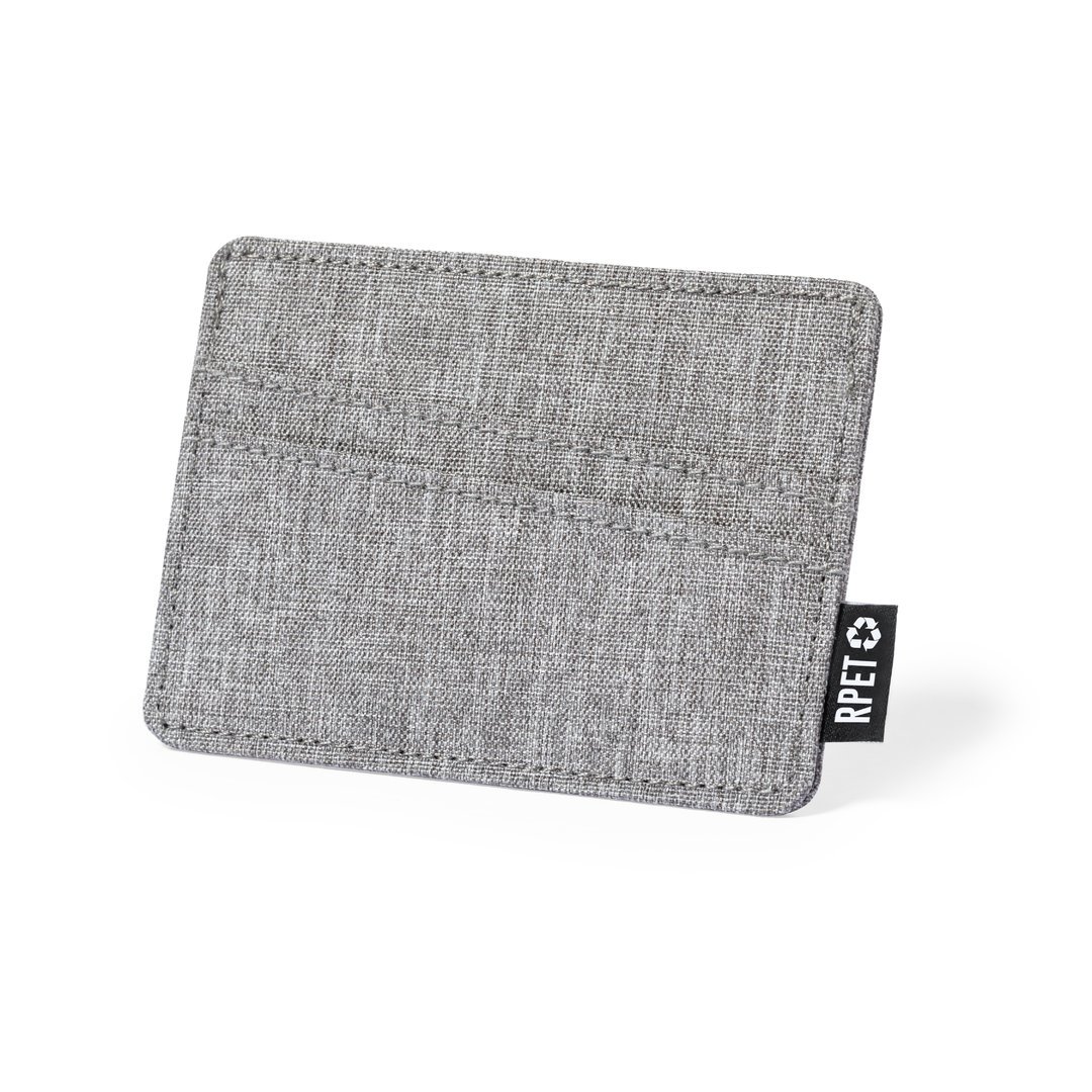 Elegante tarjetero fabricado en poliéster RPET 300D. Con 3 compartimentos independientes para tarjetas y distintivo RPET en la etiqueta exterior. El material RPET se elabora a partir de plástico reciclado, para así fomentar la reutilización de residuos plásticos y ayudar a la sostenibilidad del planeta.