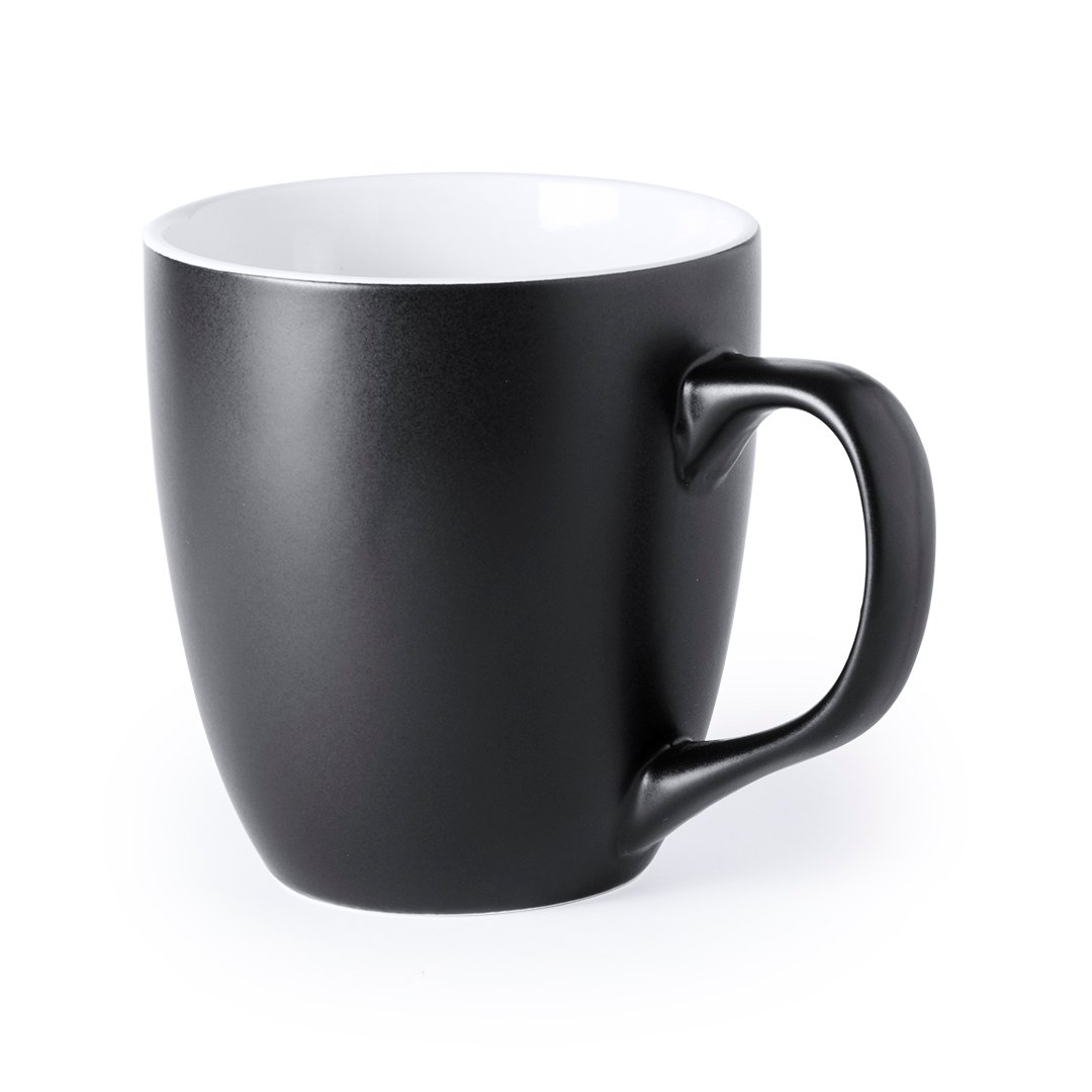 Taza de cerámica de 470ml de capacidad con exterior en variada gama de vivos colores e interior en color blanco. Presentada en caja individual.